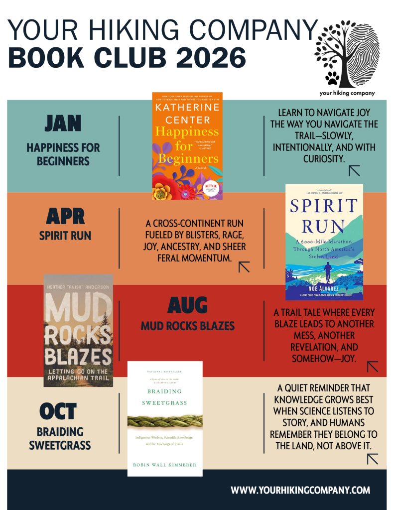My your hiking company Book Club is free, open to everyone, and built for real life. We meet for just 40 minutes on Zoom — long enough for meaningful conversation, short enough to respect your time. You don’t need to finish the book. You don’t need to love the book. You just need curiosity.